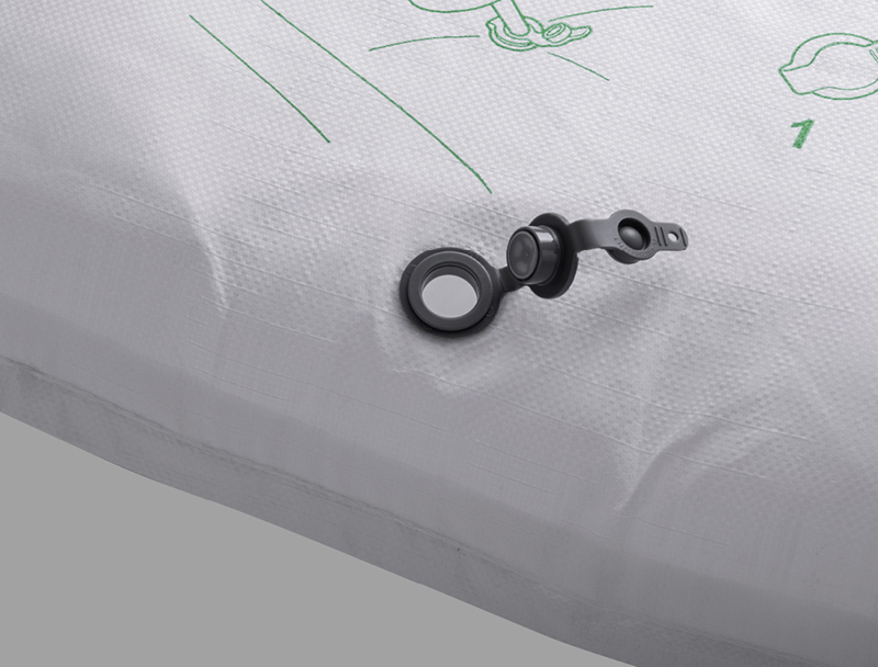 エアーの注入・排出用バルブを装備し、わかりやすい使用方法のイラストを本体に印刷。