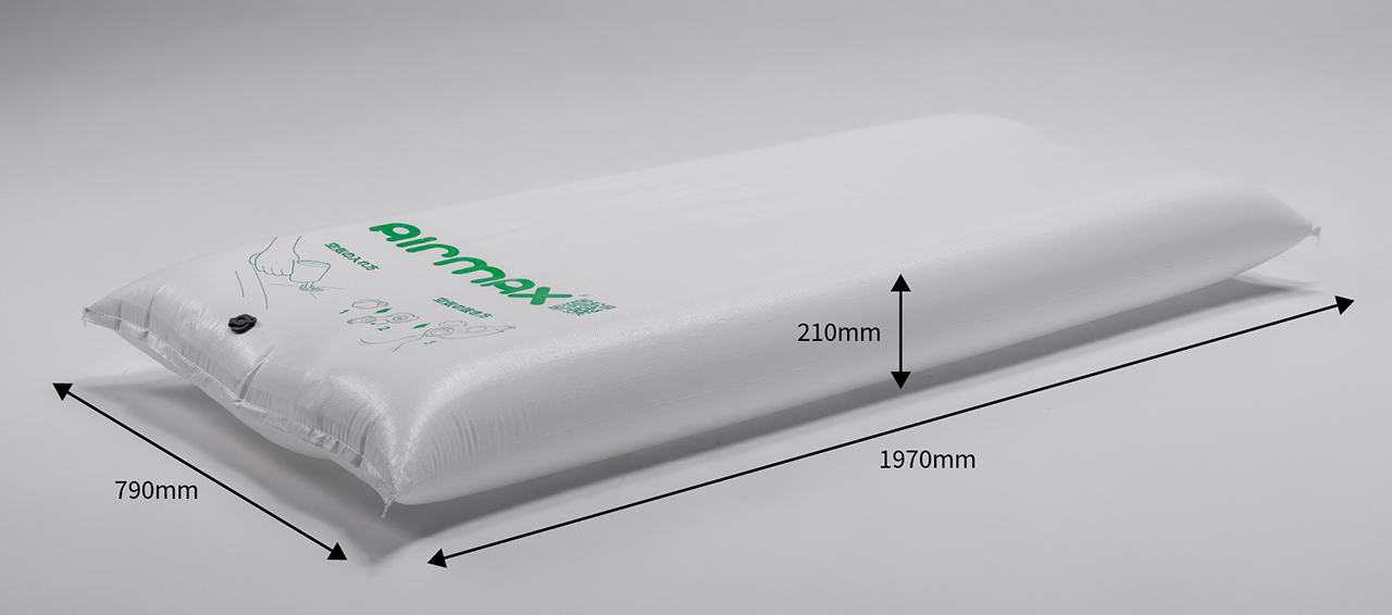 airmaxは、海外コンテナ輸送など過酷な物流現場のニーズから生まれた信頼性を誇ります。優れた耐水性・耐衝撃性を備え、水害時の家財運搬をはじめ、さまざまな防災用途への転用が可能です。2枚重ねれば、ソファーのような使い方もできます。