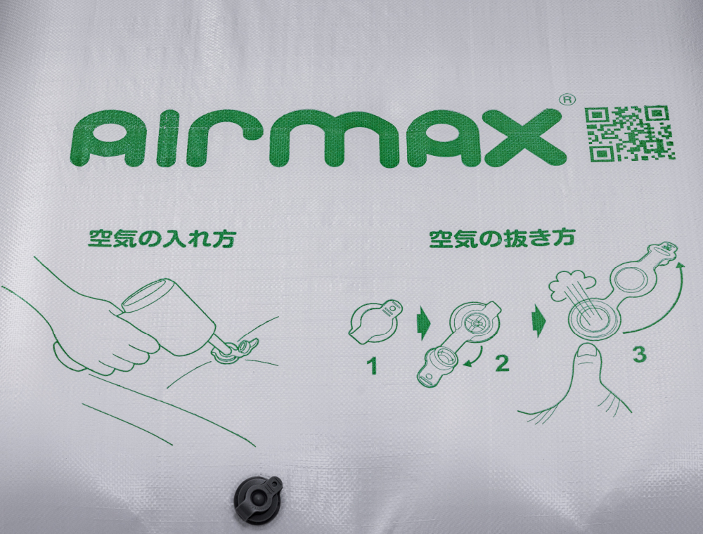 airmaxは、海外コンテナ輸送など過酷な物流現場のニーズから生まれた信頼性を誇ります。優れた耐水性・耐衝撃性を備え、水害時の家財運搬をはじめ、さまざまな防災用途への転用が可能です。2枚重ねれば、ソファーのような使い方もできます。