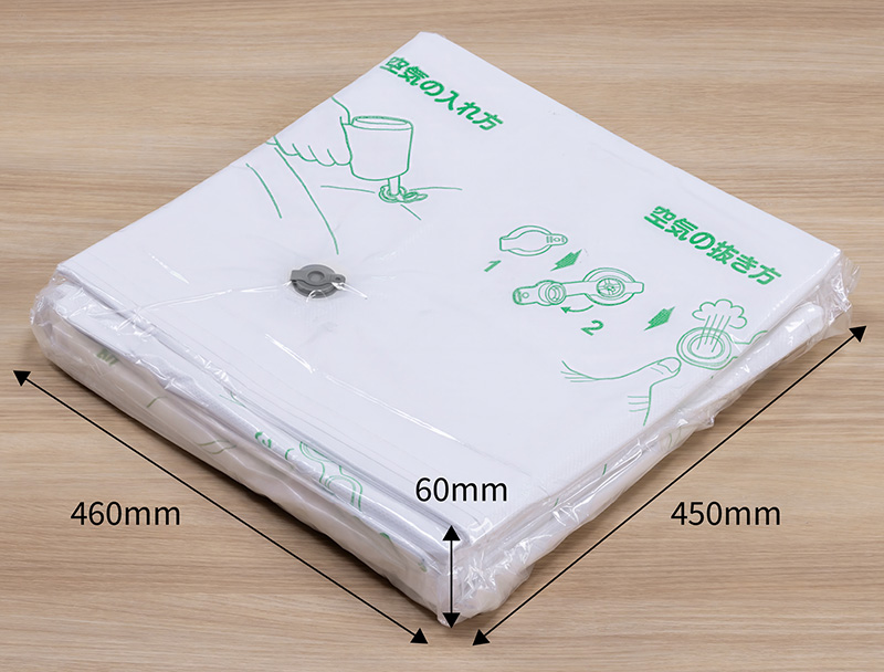エアーの注入・排出用バルブを装備し、わかりやすい使用方法のイラストを本体に印刷。